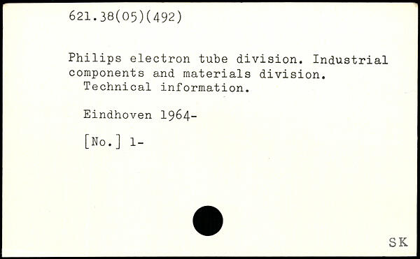 Philips electron tube division. Industrial components and materials division. Technical information. Eindhoven 1964- [No.] 1-