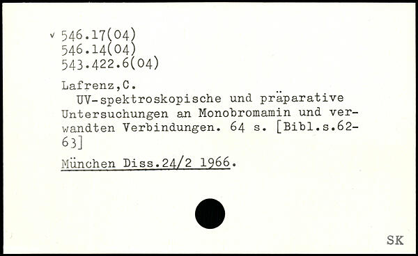 UV-spektroskopische und praparative Untersuchungen an Monohromamin und verwandten Verbindungen.