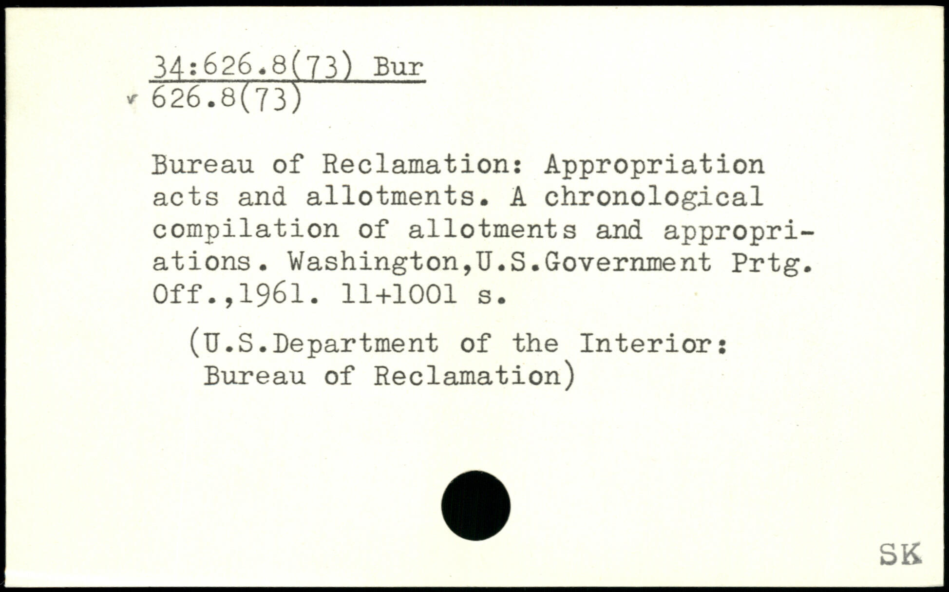 Bureau of Reclamation: Appropriation acts and allotments. A chronological compilation of allotments and appropriations. Washington,U.S.Government Prtg. Off.,1961.