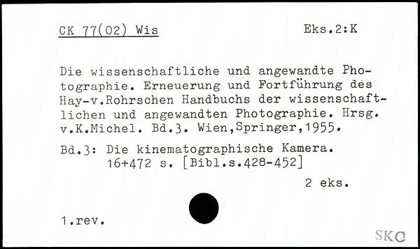 Die wissenschaftliche und angewandte Photographie. Erneuerung und Fortführung des Hay-v.Rohrschen Handbuchs der wissenschaftlichen und angewandten Photographie. Hrsg. v.K.Michel.