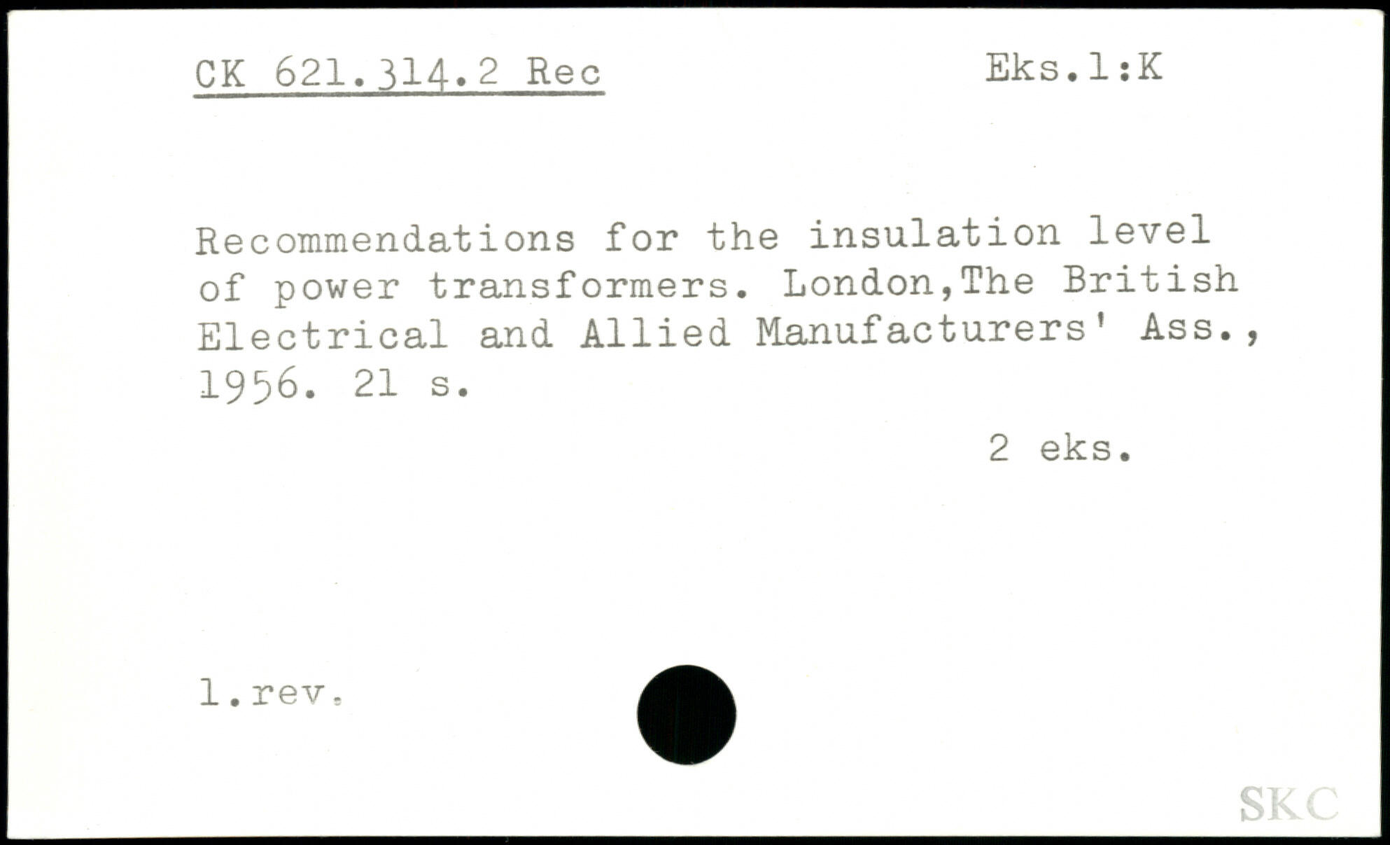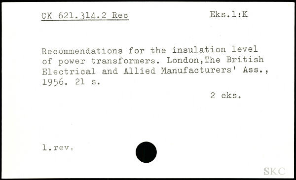 Recommendations for the insulation level of power transformers. London,The British Electrical and Allied Manufacturers’ Ass., 1956.