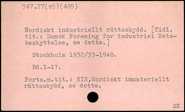 Nordiskt industriellt rättsskydd. [Tidl. tit.: Dansk Forening for industriel Retsbeskyttelse, se dette.]