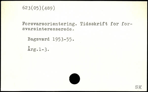 Forsvarsorientering. Tidsskrift for forsvarsinteresserede Bagsværd 1953-55, Arg.1-3.