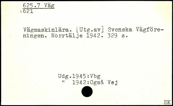 Vägmaskinlära. [Utg.av] Svenska Vägföre-ningen. Norrtälje 1942.