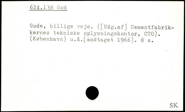 Gode, b1111ge veje. ([Udg.af] Cementfabrikkernes tekniske oplysningskontor, CTO). (København) u.å.[modtaget 1966].