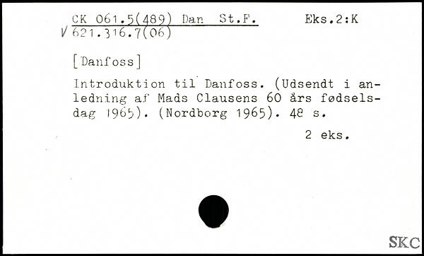 Introduktion til Danfoss. (Udsendt i anledning af Mads Clausens 60 års fødselsdag 196^). (Nordborg 1965)