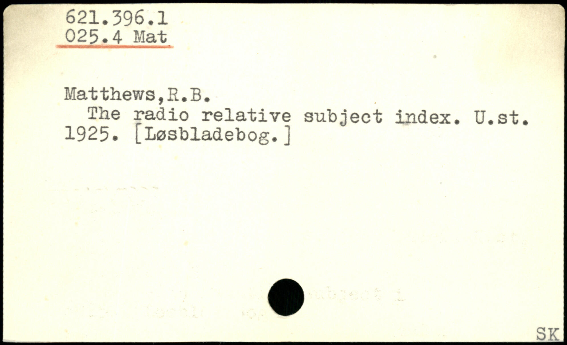 The radio relative subject index. U.st. 1925. [Løsbladebog.]