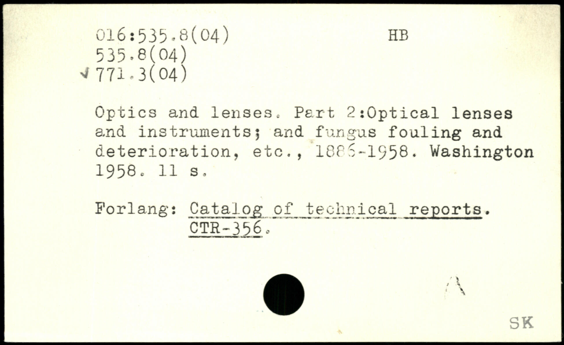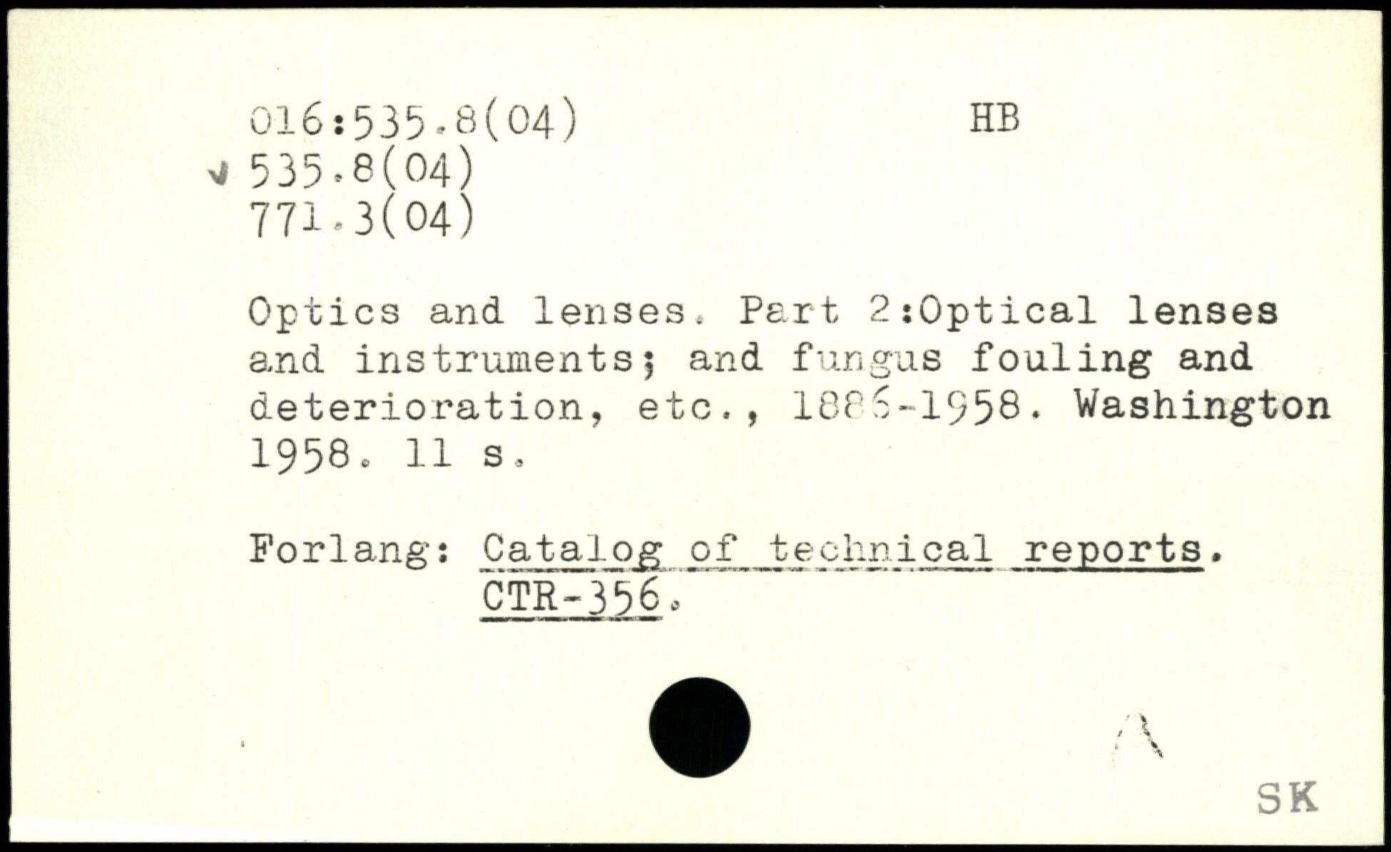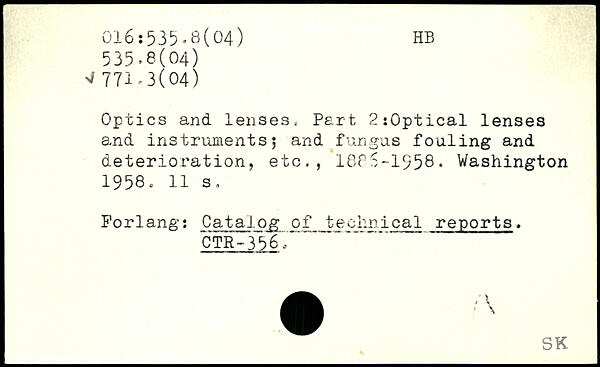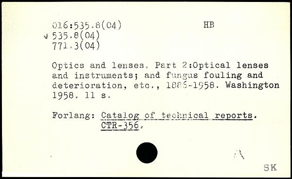 Optics and lenses. Part 2:0ptical lenses and instruments5 and fungus fouling and deterioration, etc., 1885-1958.