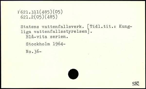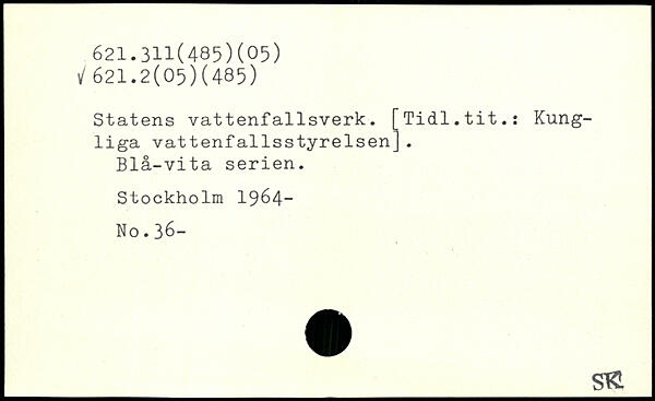 Statens vattenfallsverk. [Tidl.tit.: Kungliga vattenfallsstyrelsen]. Blå-vita serien.