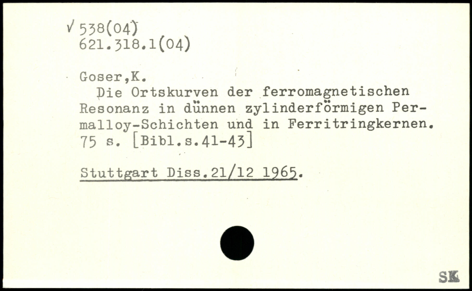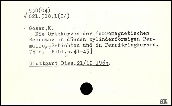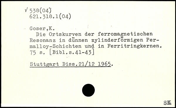 Die Ortskurven der ferromagnetischen Resonanz in dünnen zylinderförmigen Permalloy-Schichten und in Ferritringkernen.