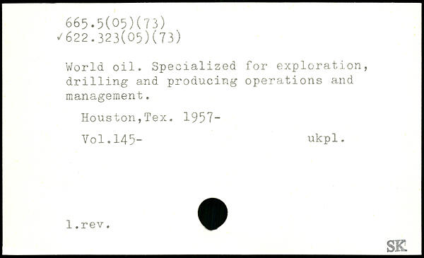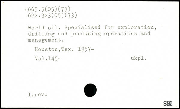 World oil. Specialized for exploration, dr1111ng and producing operations and management. Houston,Tex. 1957-