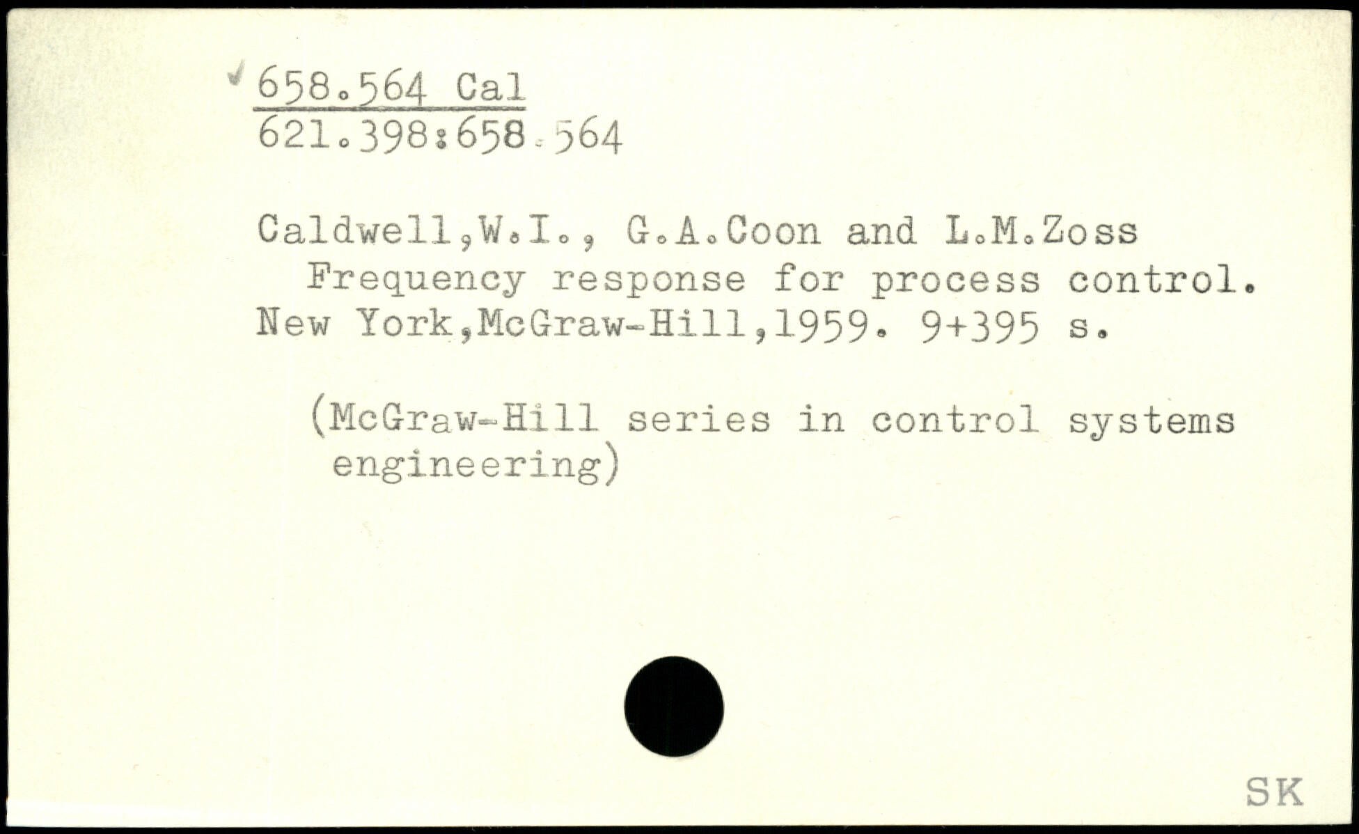 CaldwellsWeIo? G.AoCoon and LoM.Zoss Frequency response for process control.