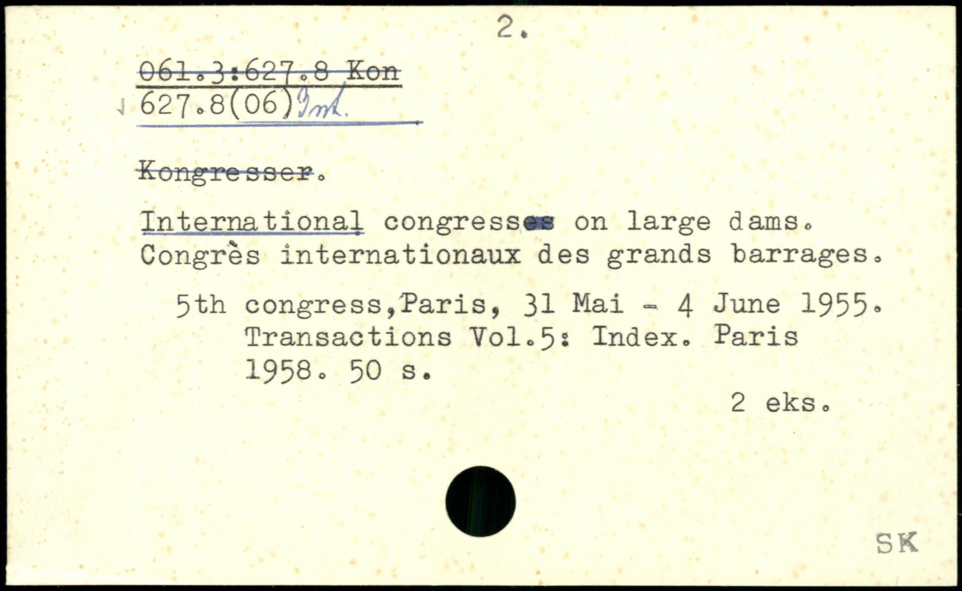 International congress®® on large dams. Congrès internationaux des grands barrages. 5th congress,Paris, 31 Mai - 4 June 1955, Transactions