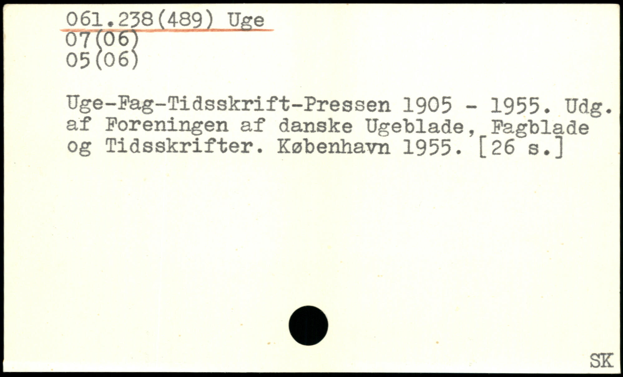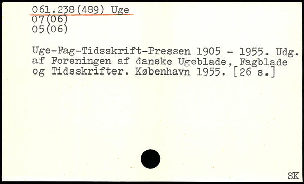 Uge-Fag-Tidsskrift-Pressen 1905 - 1955. Udg. af Foreningen af danske Ugeblade, Fagblade og Tidsskrifter.