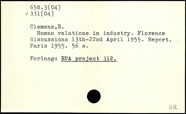 Human relations in industry, Florence discussions 13th-22nd April 1955. Report..