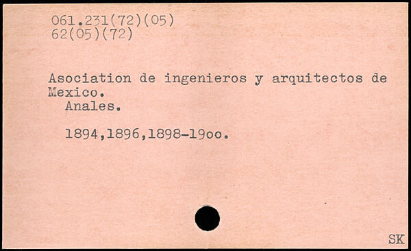 Asoclation de ingenieros y arquiteetos de Hexico. Anales. 1894,1896,1898-1900.