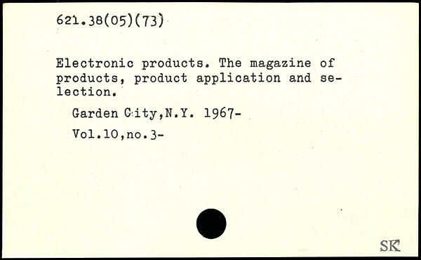 Electronic products. The magazine of products, product application and selection. Garden Gdty,N.Y. 1967-