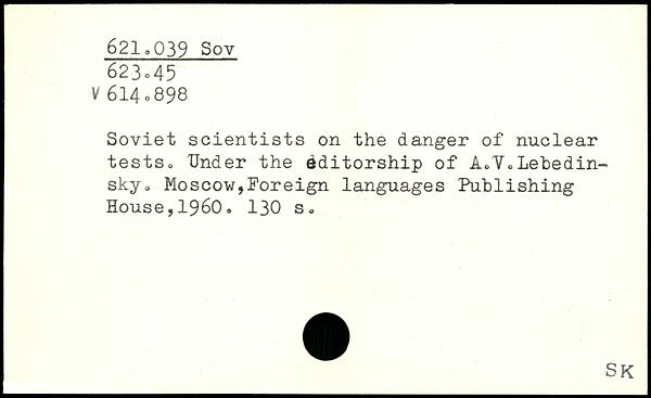 Soviet scientists on the danger of nuclear tests. Under the editorship of A,V