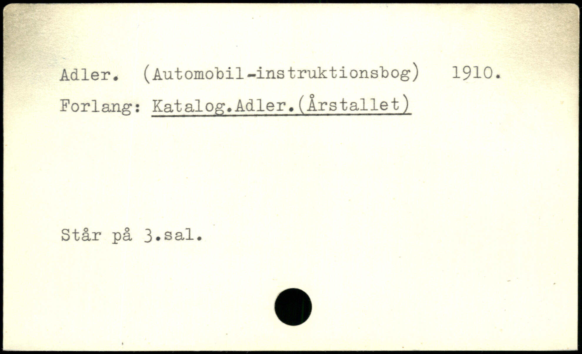 Adler. (Automobil-instruktionsbog) 1910. Forlang: Katalog.Adler.(Årstallet) Står på 3,sal.