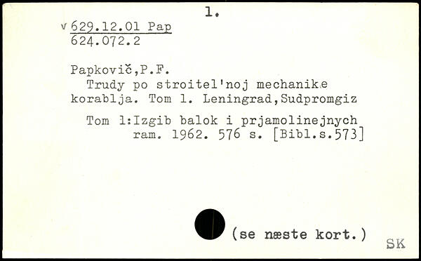 Trudy po stroitel ’ noj mechanik.e korablja. Tom 1. Leningrad,Sudpromgiz Tom 1:Izgib balok i prjamolinejnych ram. 1962.