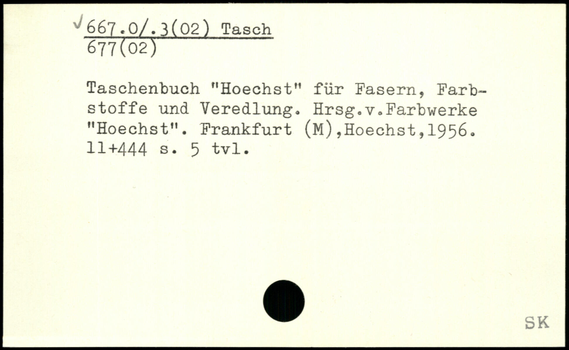 Taschenbuch nHoechstM für Fasern, Farbstoffe und Veredlung. Hrsg.v.Farbwerke "Hoechst". Frankfurt (M),Hoechst,1956.