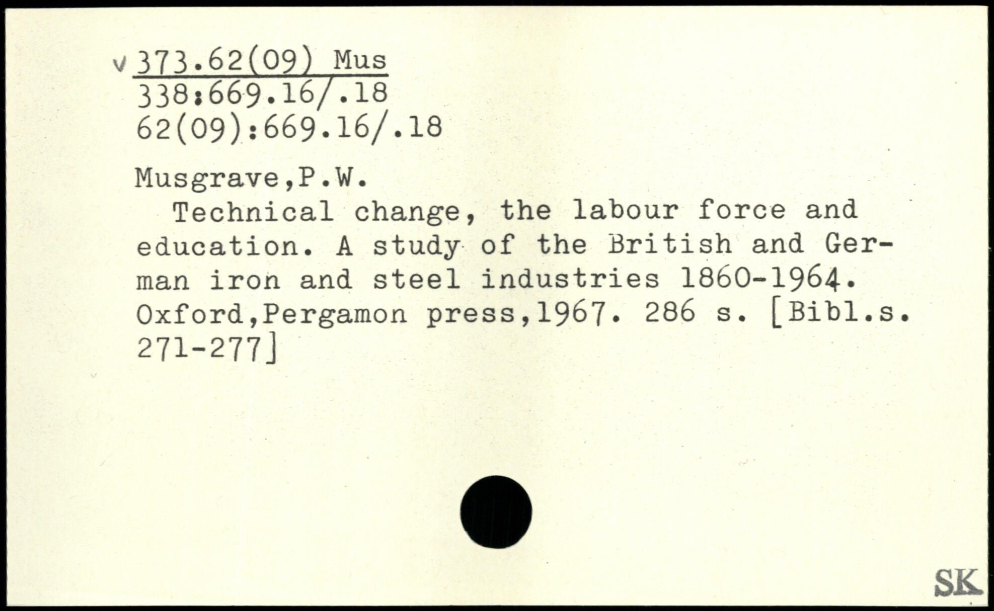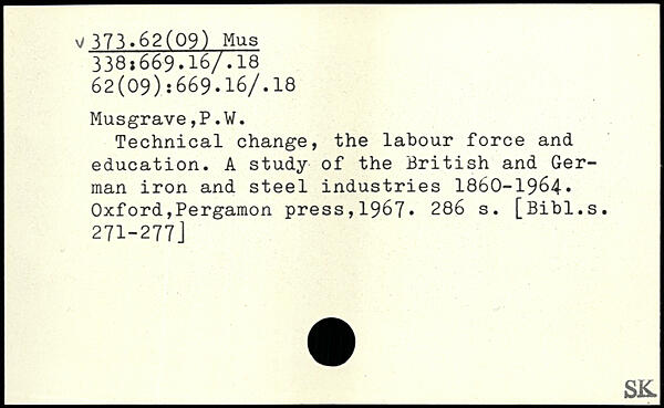 Technical change, the labour force and education. A study of the British and German iron and steel industries 1860-1964