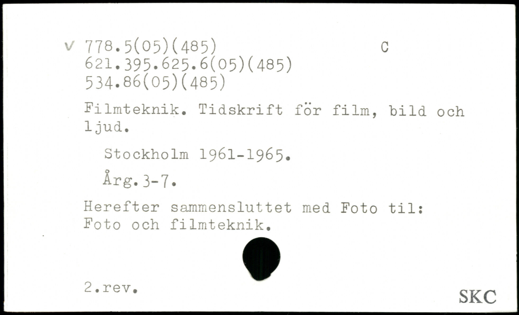 Filmteknik. Tidskrift för film, bild oeh ljud.