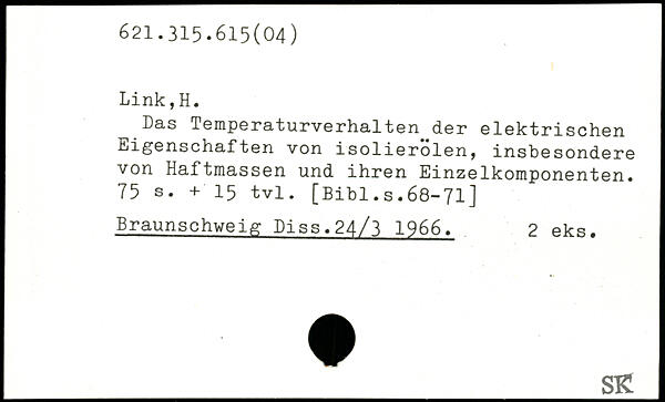 Das Temperaturverhalten der elektrischen Eigenschaften von isolierolen, insbesondere von Haftmassen und ihren Einzelkomponenten.