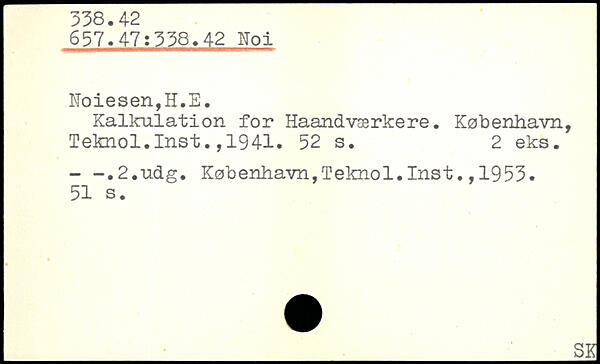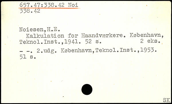 Kalkulation for Haandværkere. København, Teknol.Inst.,1941.