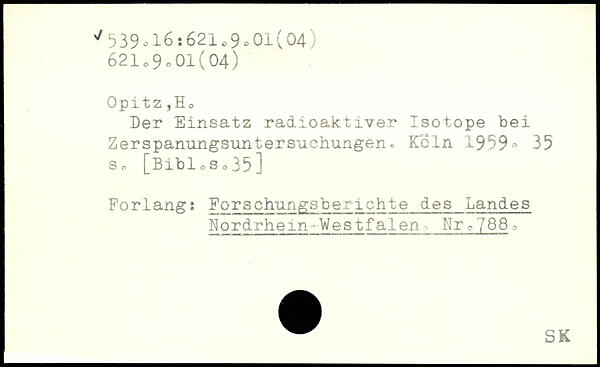 Der Einsatz radioaktiver Isotope bei Zerspanungsuntersuchungen