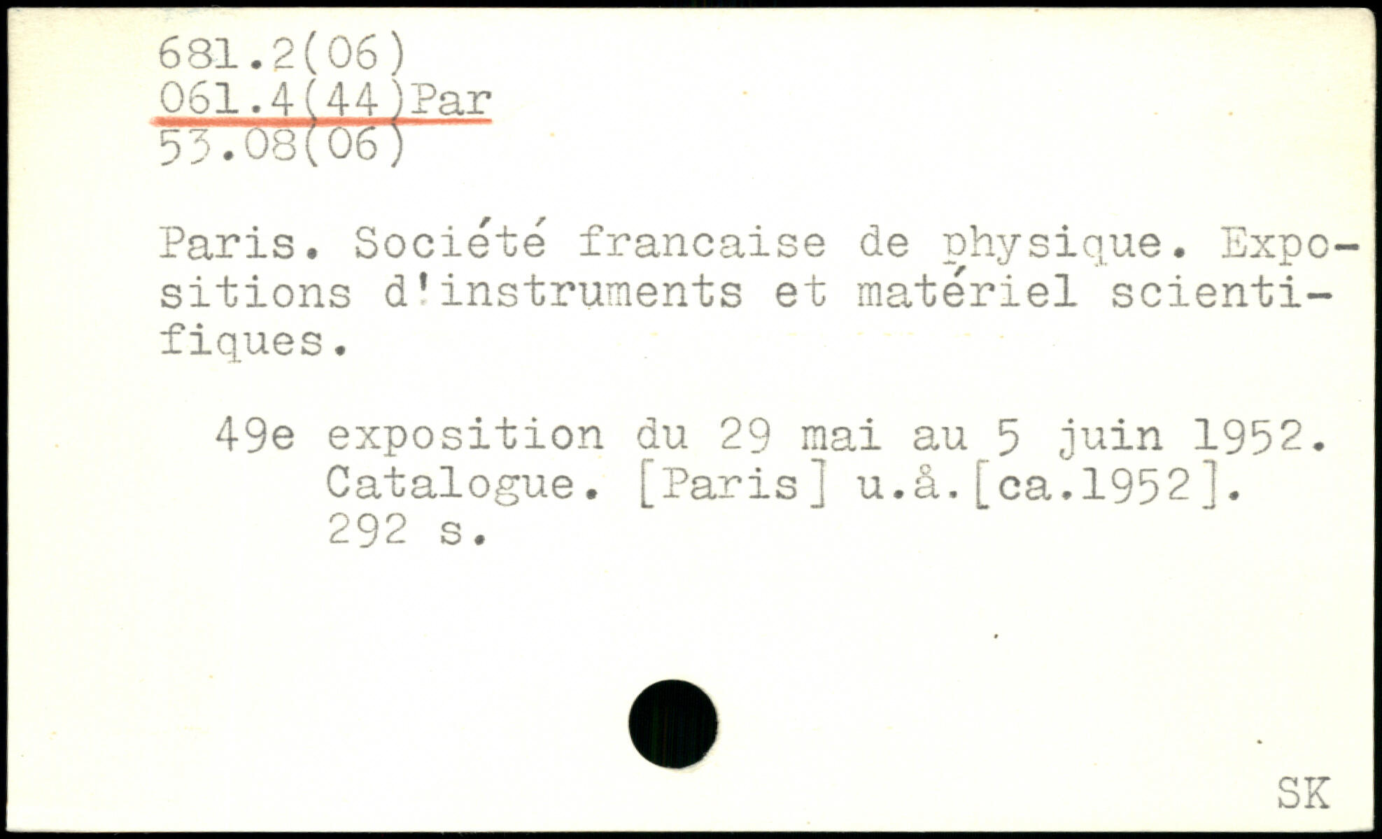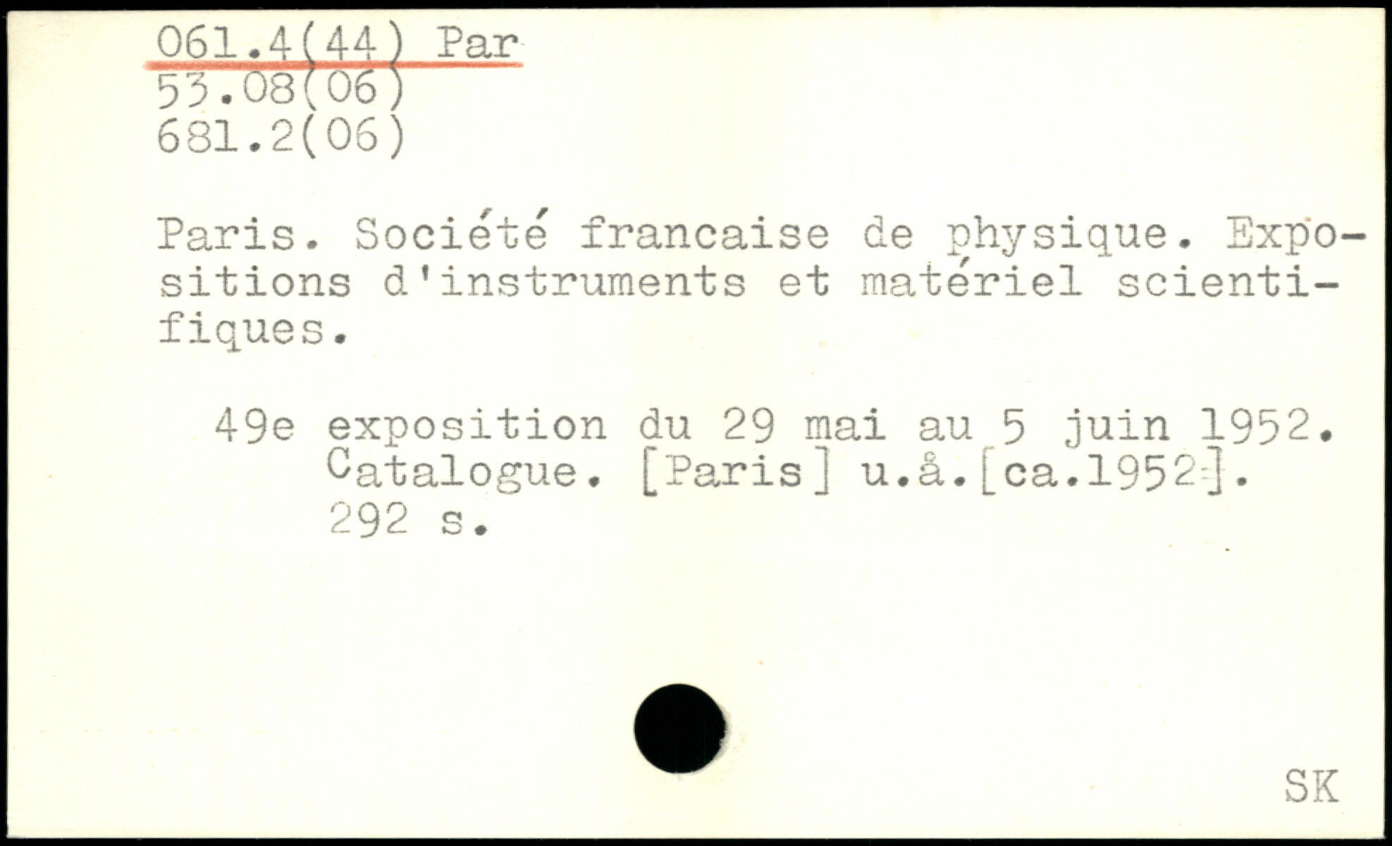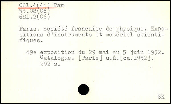 Paris. Société française de physique. Expositions d'instruments et matériel scientifiques. 49e exposition du 29 mai au 5 juin 1952. Catalogue, [Paris j u.â.