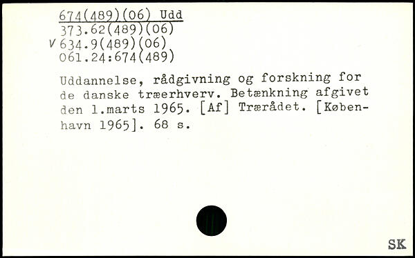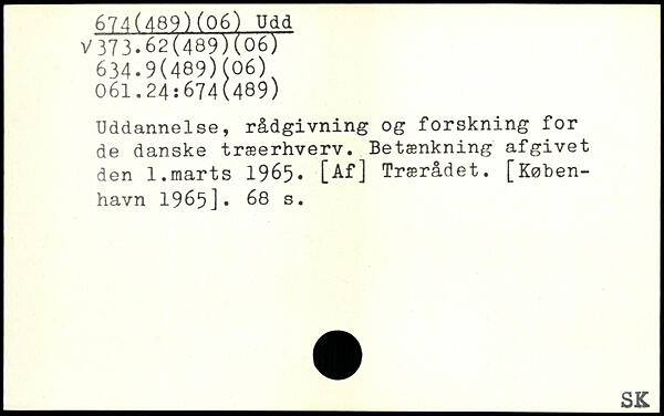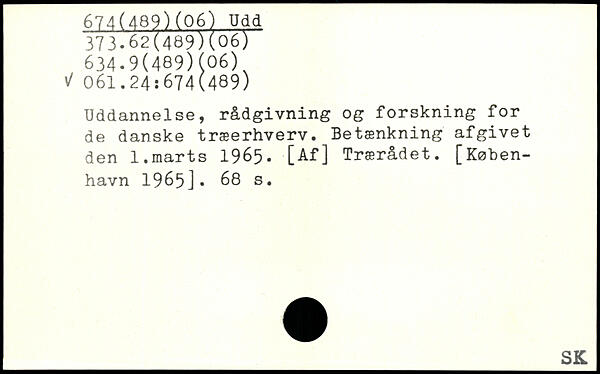 Uddannelse, rådgivning og forskning for de danske træerhverv. Betænkning afgivet den 1.marts 1965. [Af] Trærådet.