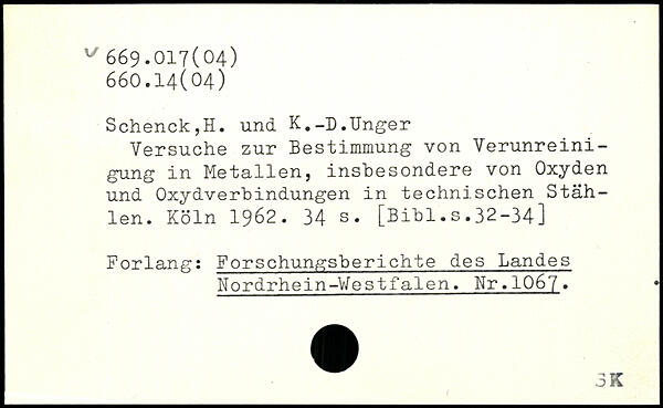 Versuche zur Bestimmung von Verunreinigung in Metallen, insbesondere von Oxyden und Oxydverbindungen in technischen Stählen.