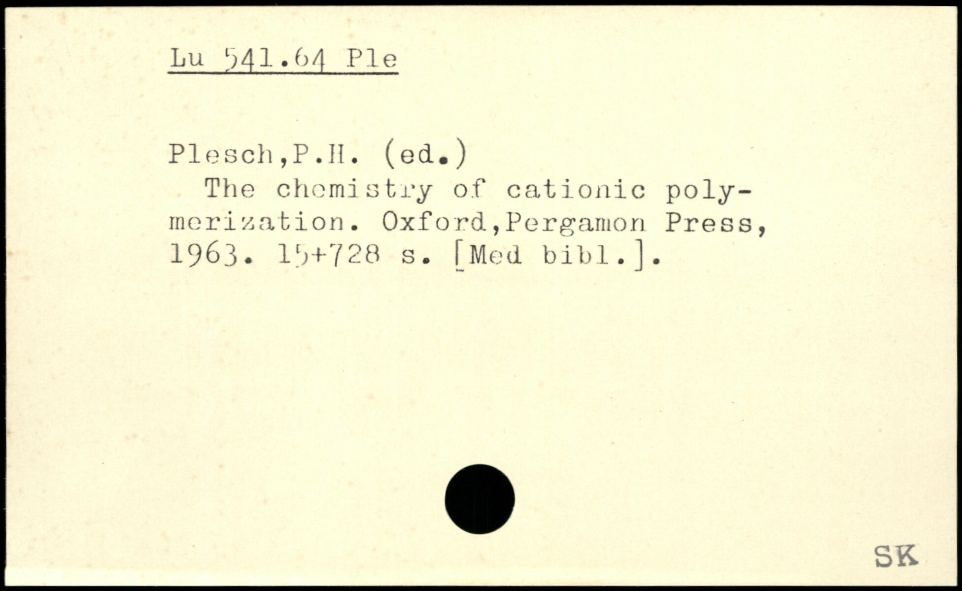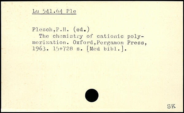 Plesch ,P .11. (ed.) The chemistry of cationic polymerization. OxfordjPergamon Press, 1963.