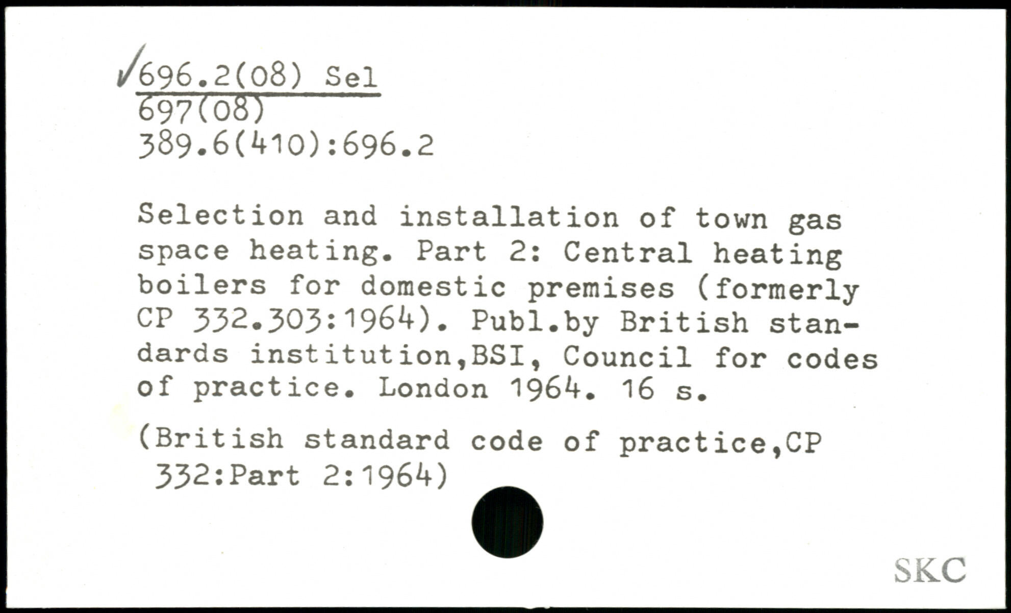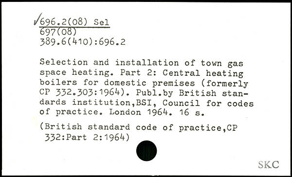 Selection and installation of town gas space heating. Part 2: Central heating boilers for domestic premises (formerly CP 332.303:1964).