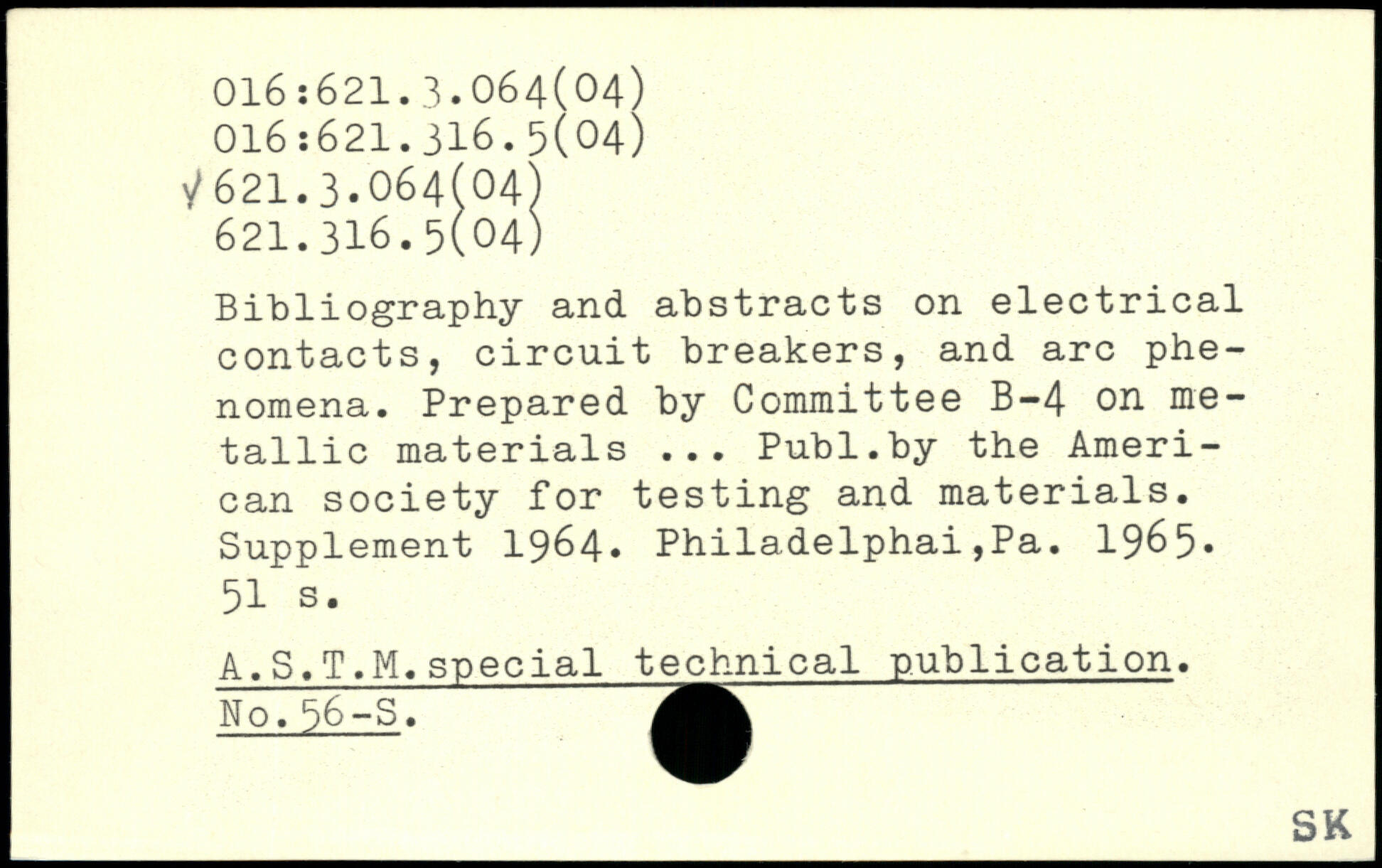 Bibliography and abstracts on electrical contacts, circuit breakers, and arc phenomena. Prepared by Committee B-4 on metallic materials ---