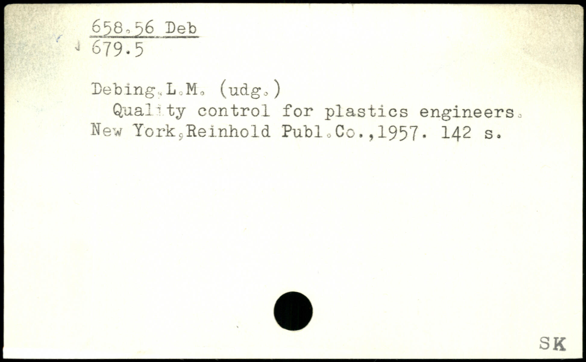 Debing,L M, (udg>) Quality control for plastics engineers.. New YorksReinhold Publ0Co.,1957.