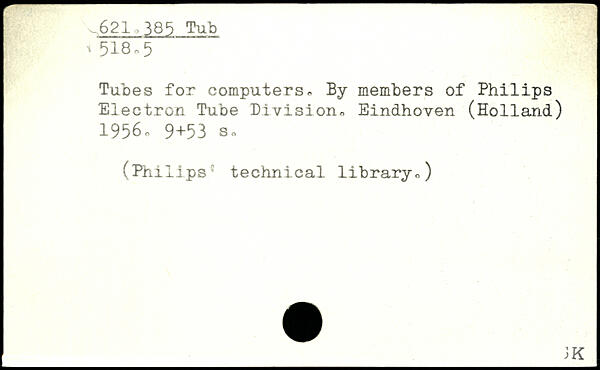 Tubes for computers, By members of Philips Electron Tube Division, Eindhoven (Holland) 1956o