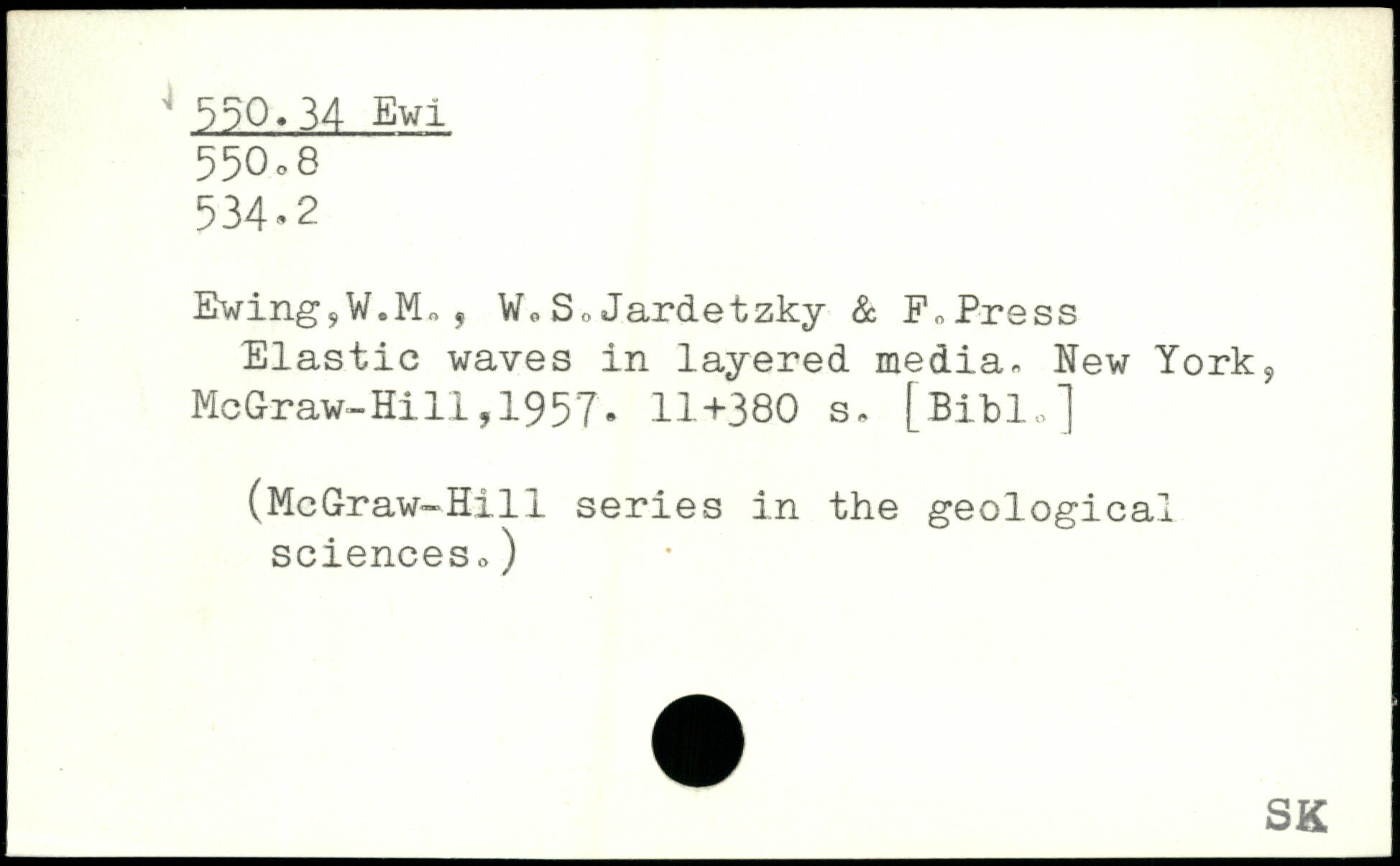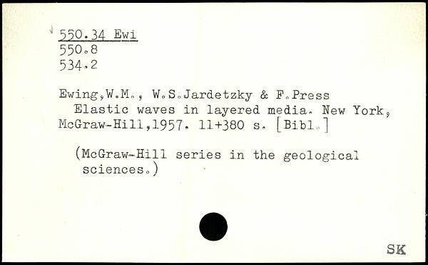 Ewing,W.Mo, Wo SoJardetzky & E,Press Elastic waves in layered media.