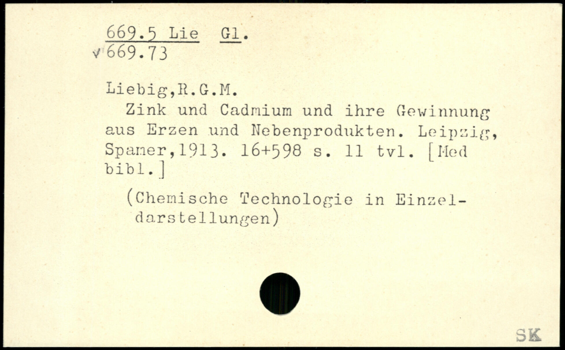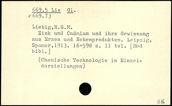 Zink und Cadmium und ihre Gewinnung aus Erzen und Nebenprodukten. Leipzig, j Spamer,1913.