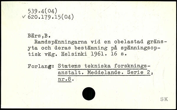 Randspänningarna vid en obelastad gränsyta och deras bestämning på spänningsoptisk väg.