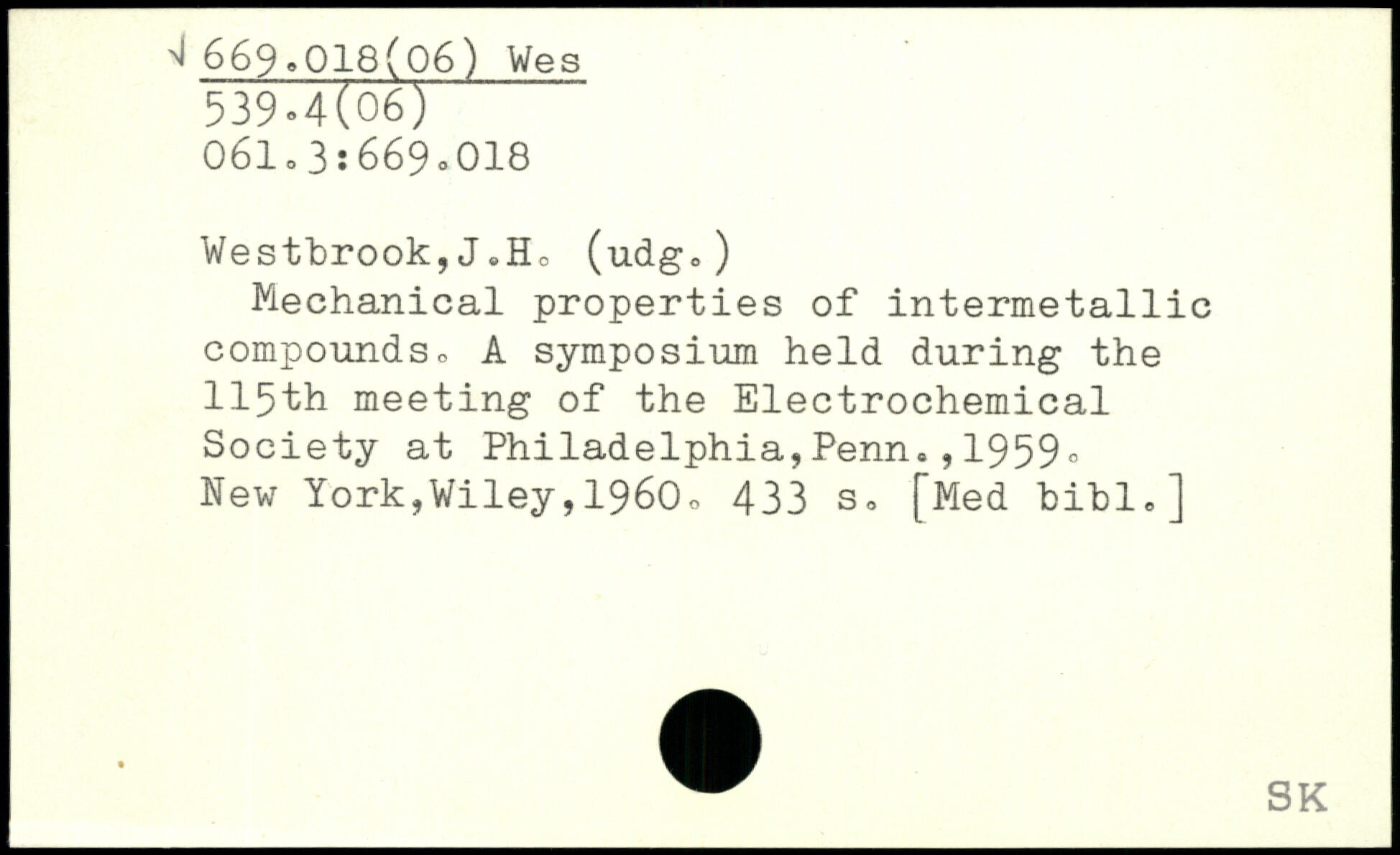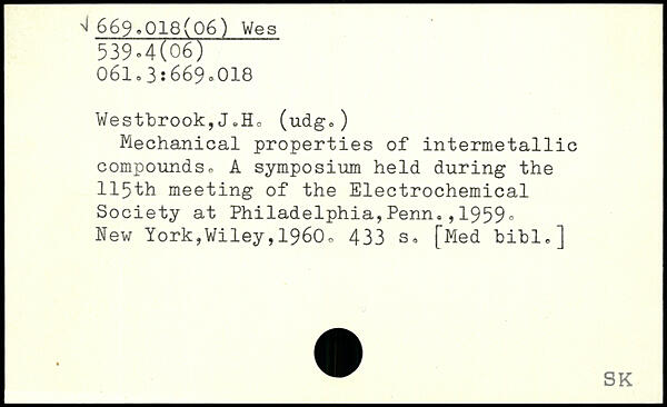 Westbrook,J.He (udg.) Mechanical properties of intermetallic compounds. A symposium held during the 115th meeting of the