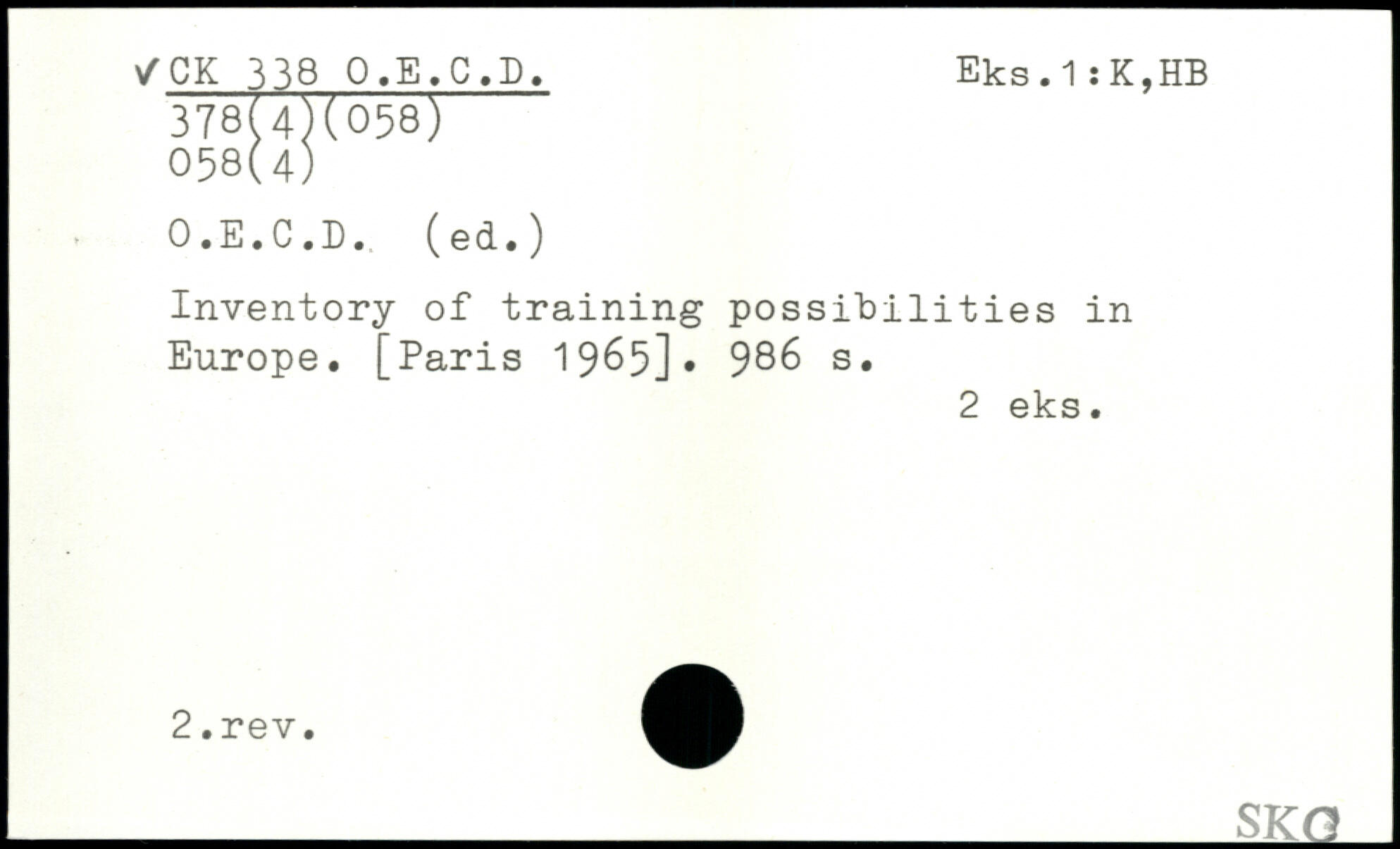 Inventory of training possibilities in Europe.