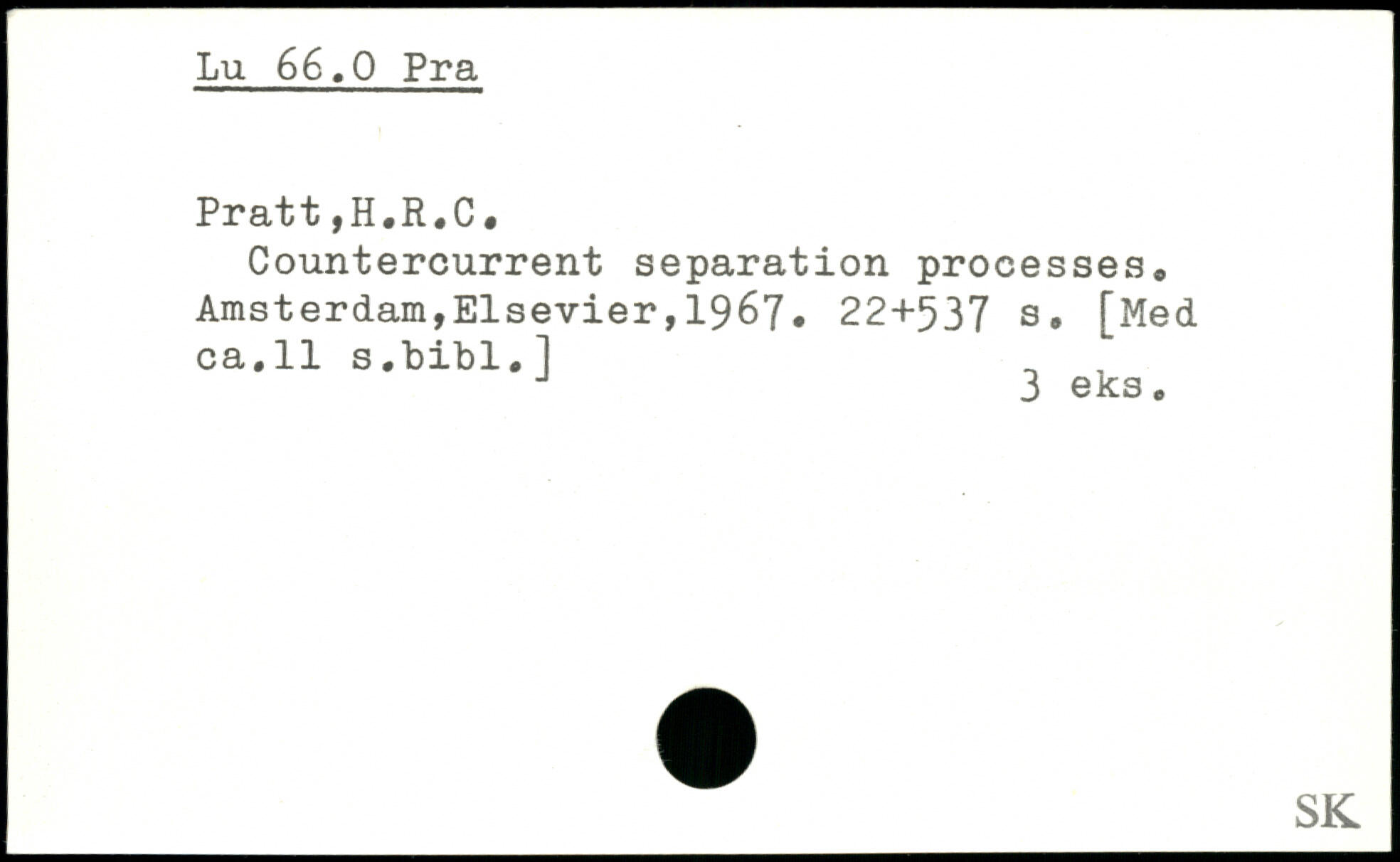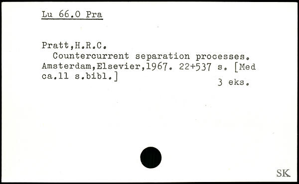 Countercurrent separation processes, Amsterdam,Elsevier,1967. 22+537 s, [Med ca.ll s.bibl.l J 3 eks