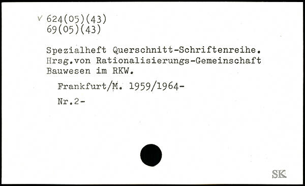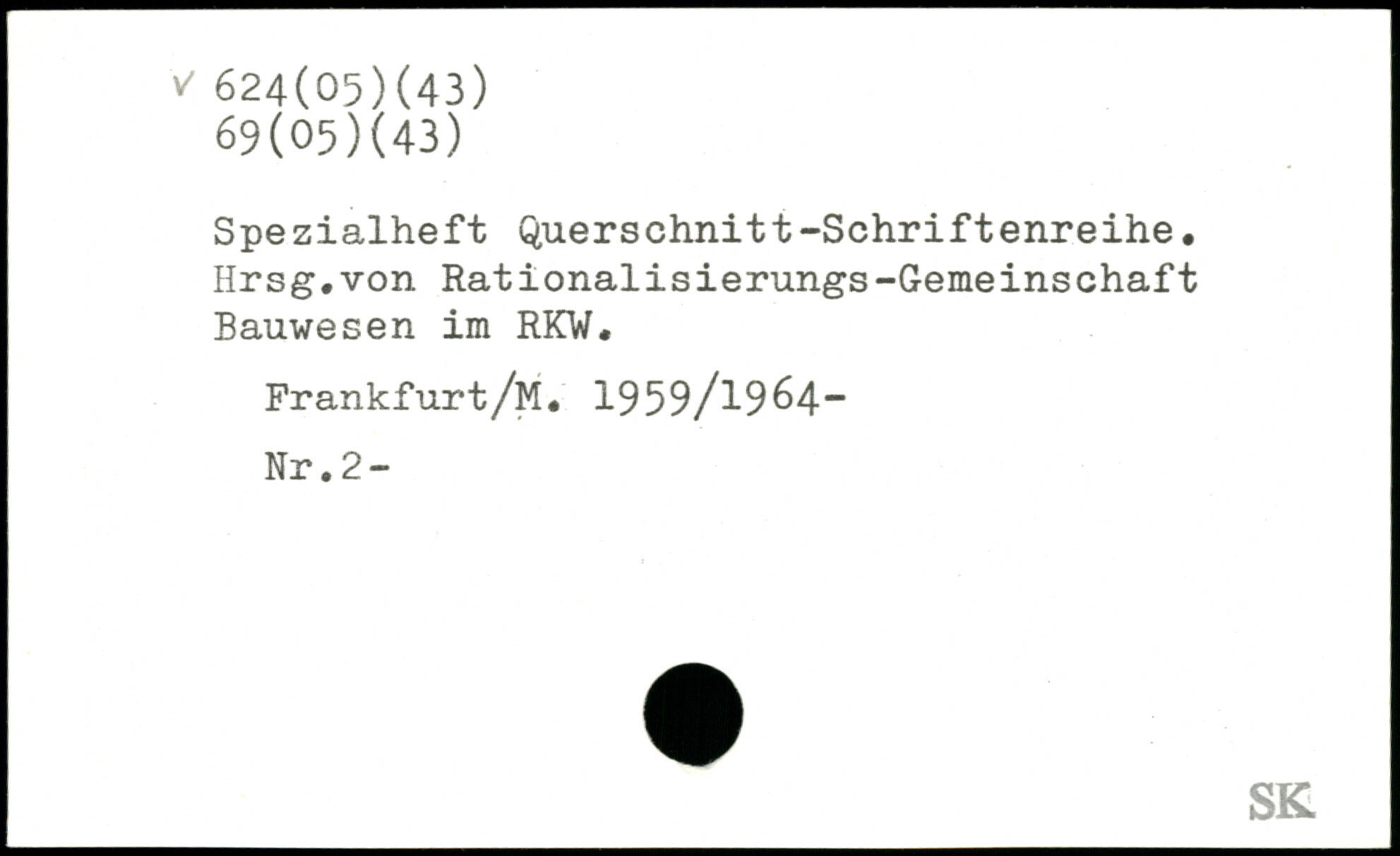 Spezialheft Querschnitt-Schriftenreihe. Hrsg,von Rationalisierungs-Gemeinschaft Bauwesen im RKW. Frankfurt/M. 1959/1964“ Nr. 2-