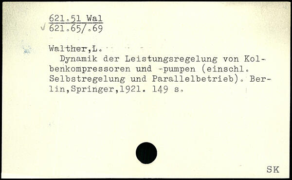 Dynamik der Leistungsregelung von Kol-benkompressoren und -pumpen (einschl, Selbstregelung und Parallelbetrieb)