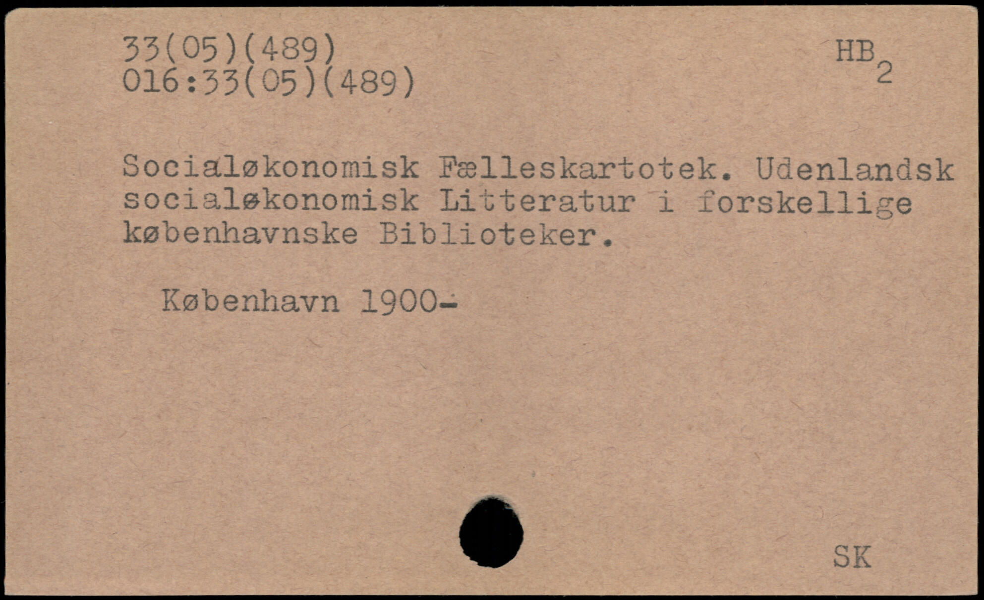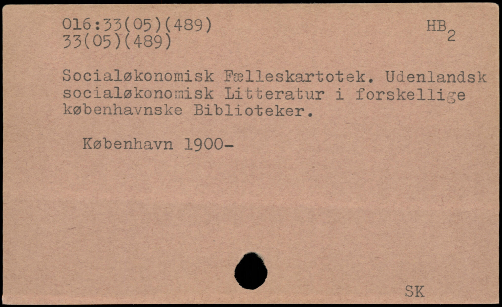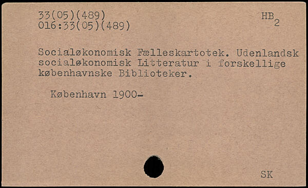 Socialøkonomisk Pælleskartotek. Udenlandsk socialøkonomisk Litteratur i forskellige københavnske Biblioteker.