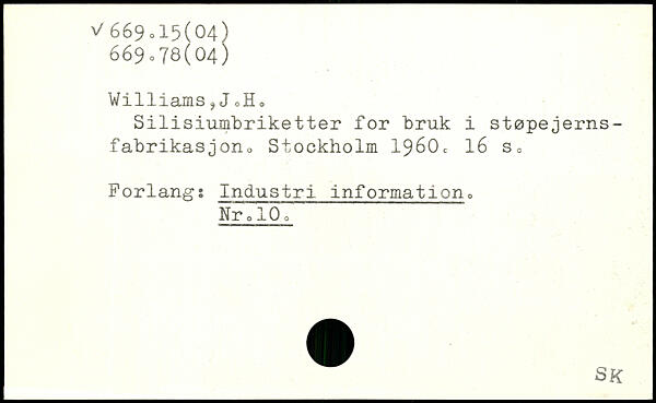 W1111ams ,J 0Ho Silisiumbriketter for bruk i støpejerns-fabrikasjon