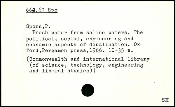 Fresh water from saline waters. The political, social, engineering and economic aspects of desalination.