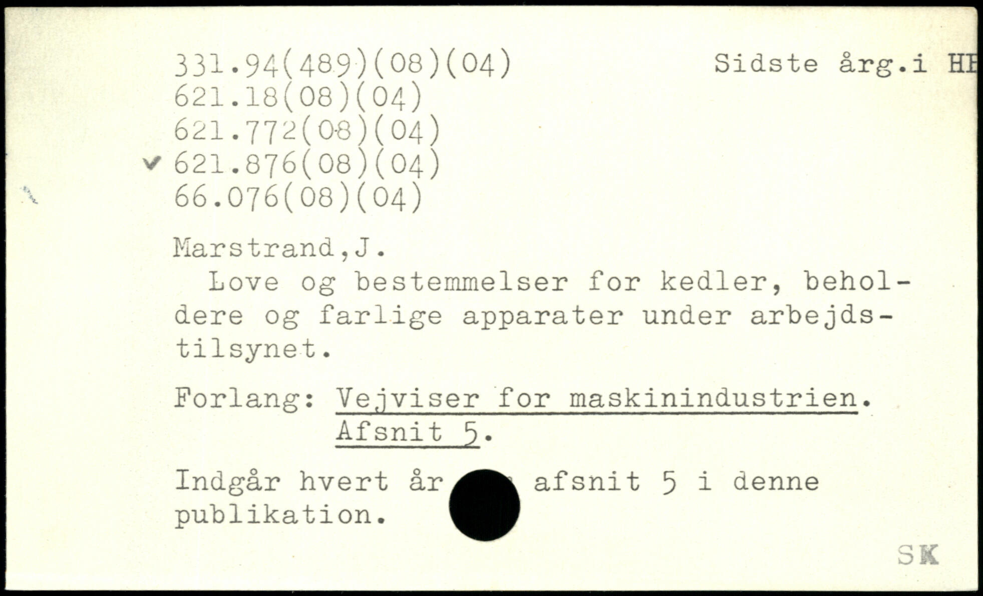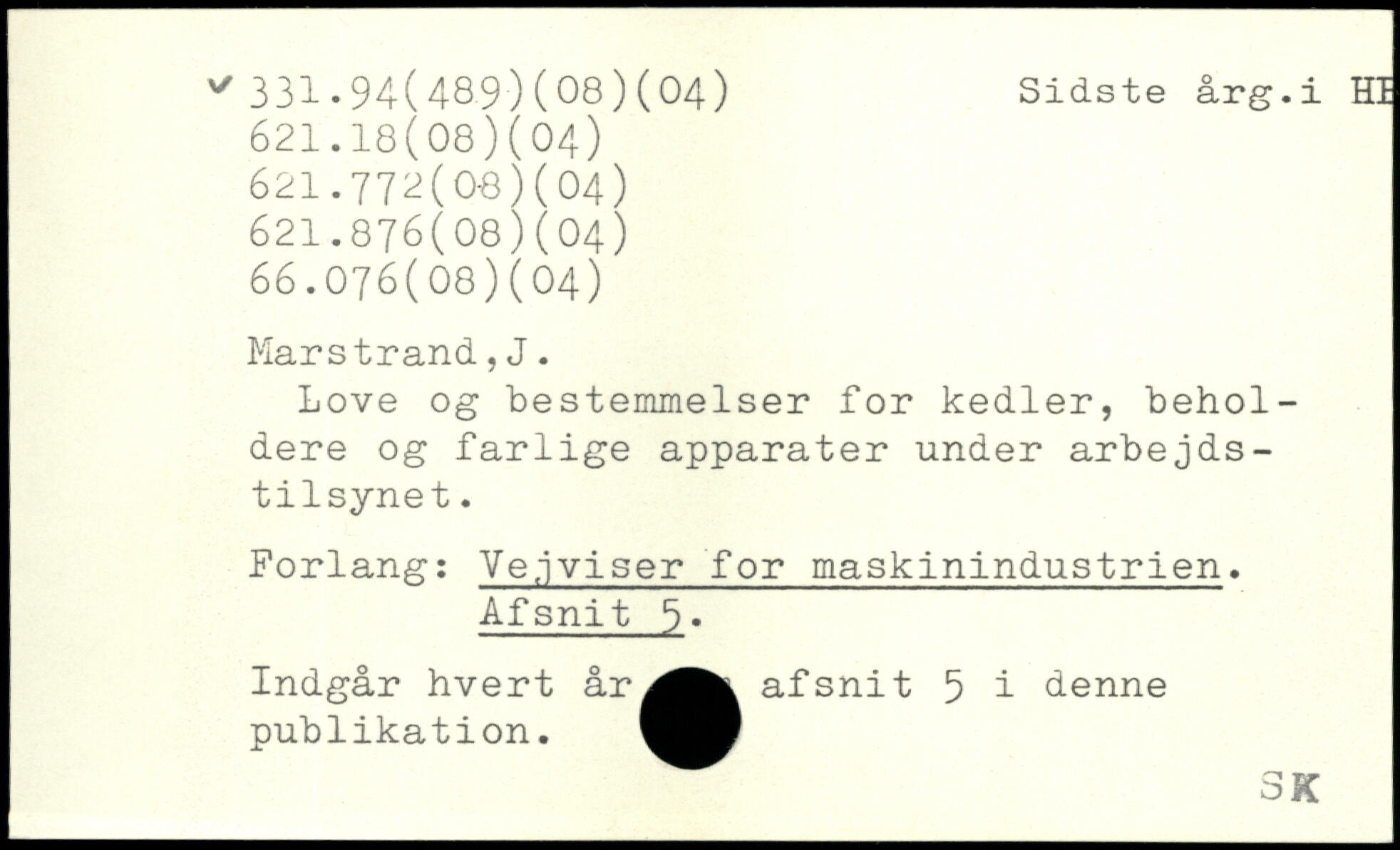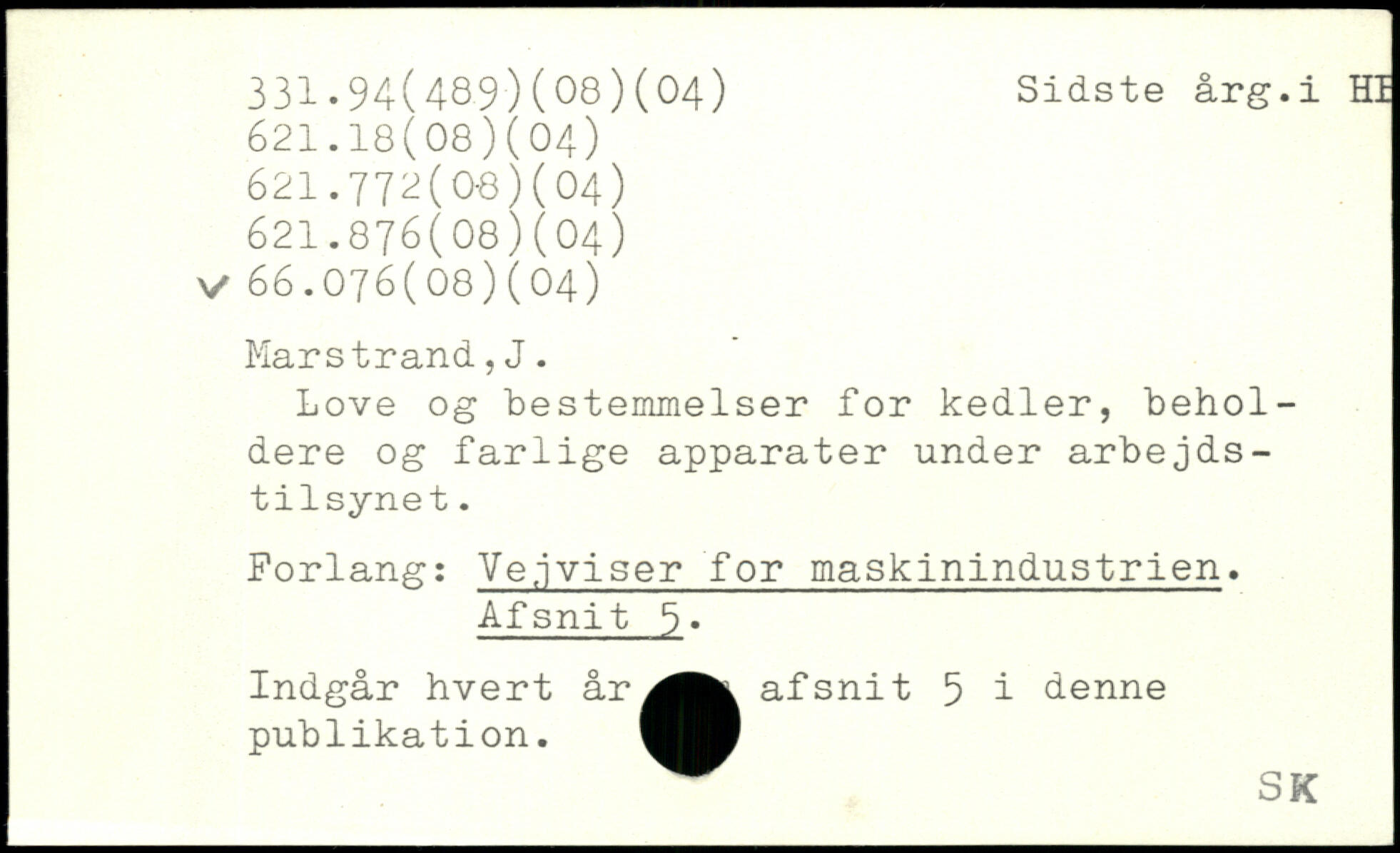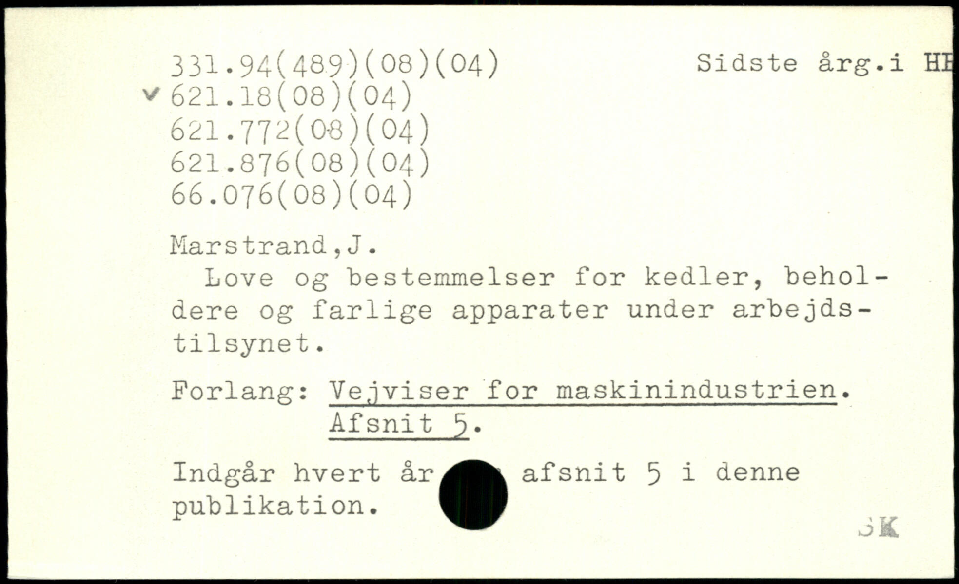 Love og bestemmelser for kedler, beholdere og farlige apparater under arbejdstilsynet. Forlang: Vejviser for maskinindustrien, Afsnit 6, Indgår hvert år^Mt afsnit 5 i denne publikation.